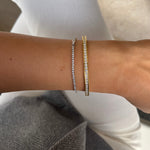 Vores Eternity Bangle er et elegant og tidløst armbånd, der tilføjer et strejf af luksus til både hverdagsbrug og særlige lejligheder. De funklende sten og det enkle design gør det til et smykke, der kan bæres alene for et minimalistisk udtryk eller styles med andre armbånd for et personligt look.
