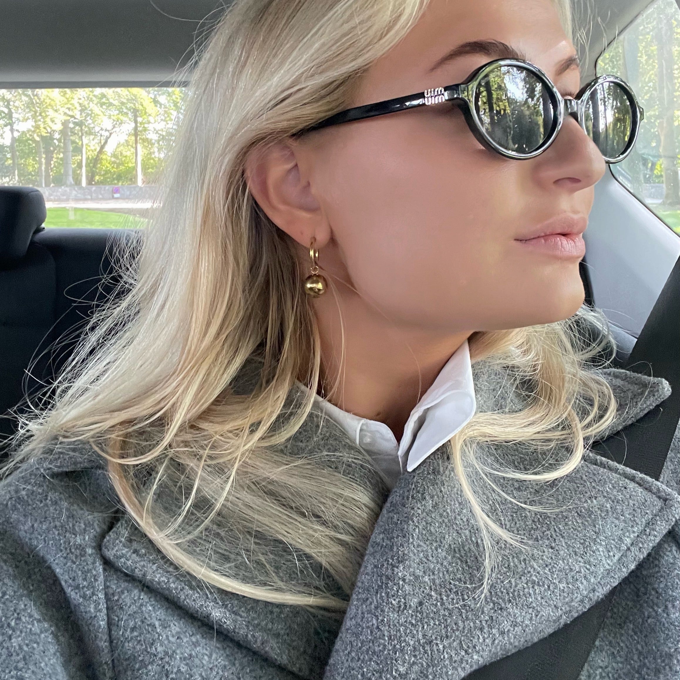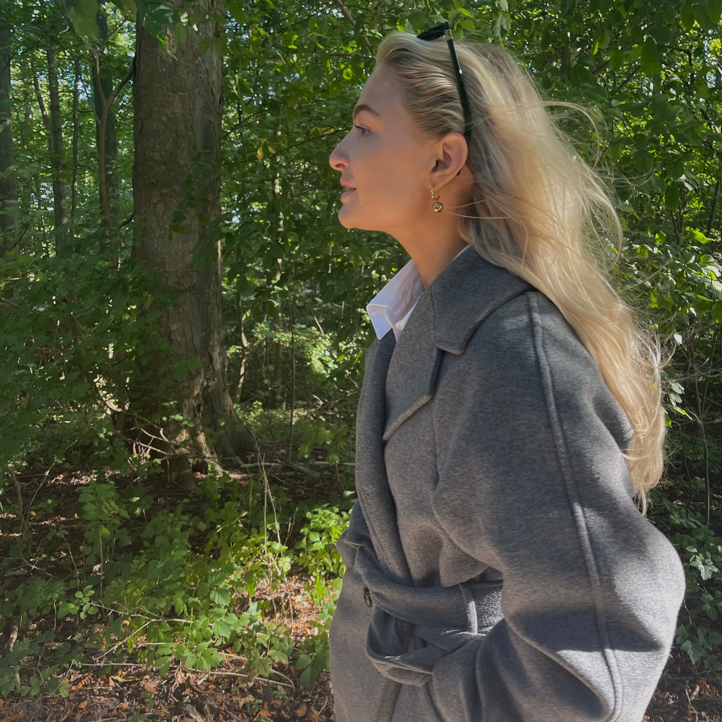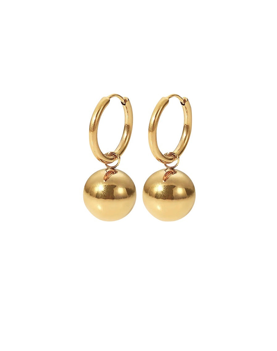 Nina øreringene er et par elegante, tynde hoops med en kugle, der hænger og tilføjer et unikt twist til det klassiske design. Deres enkle, men sofistikerede udseende gør dem perfekte til både hverdagsbrug og festlige lejligheder.
